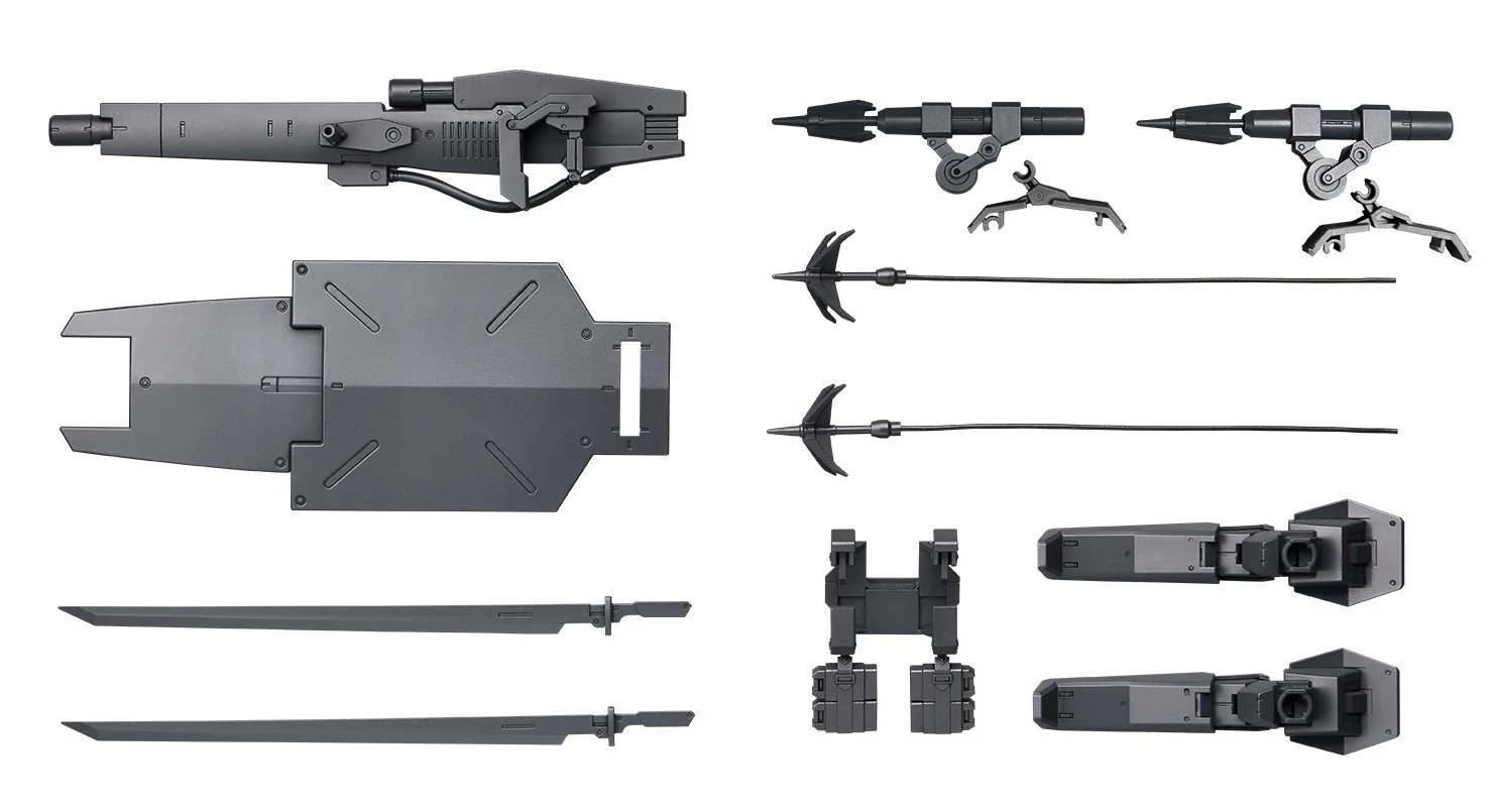 A weapon set that aggregates the armaments of the Kyokai Senki 1/72 series and allows you to create your own original configurations. Features winch unit equipment, laser cannon, swords, shield, and accessories.