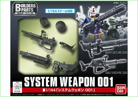 Bandai brings even more goodies to the world of Gunpla with the addition of a new series of Gundam accessories called Builders Parts. This particular set is System Weapon #1 and features a Zaku Machine Gun and a Beam Gatling Gun. These two guns are meant for 1/144 scale kits, great for HG and RG kits, and assemble in several different ways and come with a weapons rack to store them! Also, check out more Builders Parts linked below.