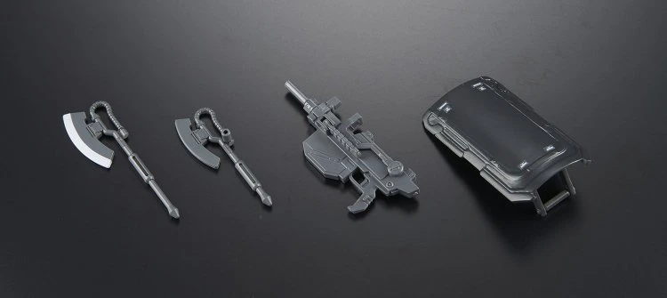 This model kit comes with a mobile suit machine gun, sheathed and unsheathed Heat Hawk, shield, optional hand parts, 9 runners, instruction manual, and a Tetron sticker to recreate the prototype mobile suit.