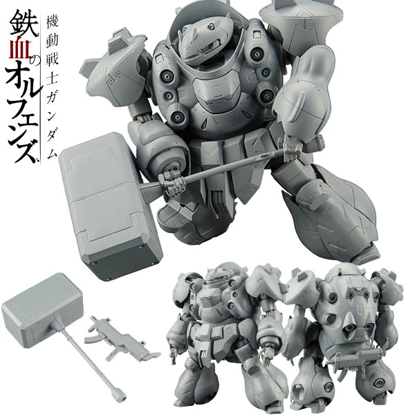 This big mobile suit comes with a big hammer! Ready to smash away at your other Gundam kits. From the hit anime series Iron-Blooded Orphans its the Gusion! Piloted by Kudaru Kaderu from the Brewers. Parts come molded in multiple colors and includes a sheet of foil marking stickers.