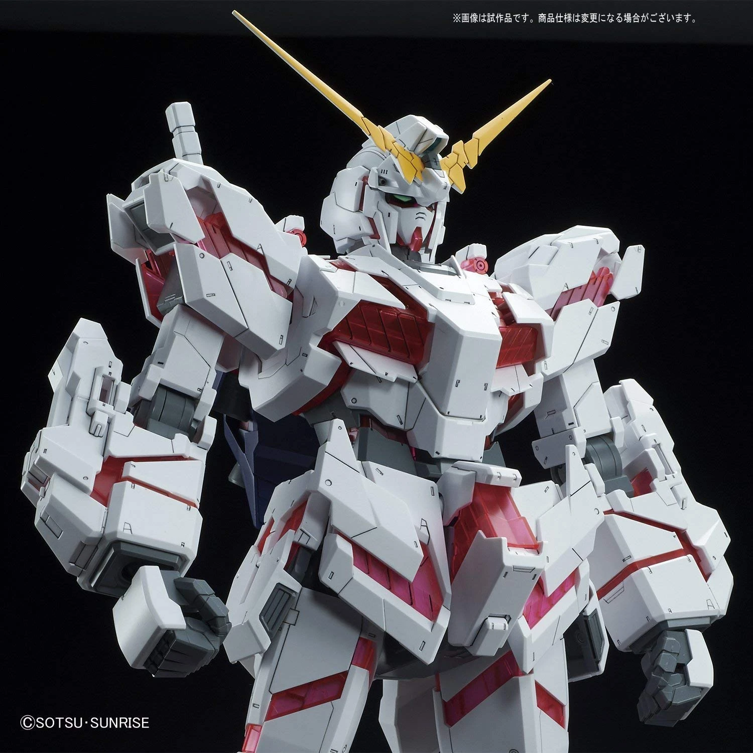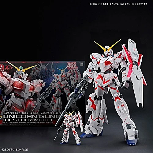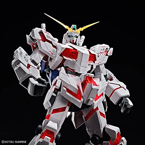 From the Gundam Unicorn series comes the 1/48 scale Unicorn Gundam! At over 17 inches tall this is taller than the Perfect Grade model! Clear red internal parts are utilized for the Psycho frame components and armor parts have been molded a certain way to create a shading effect at key points.