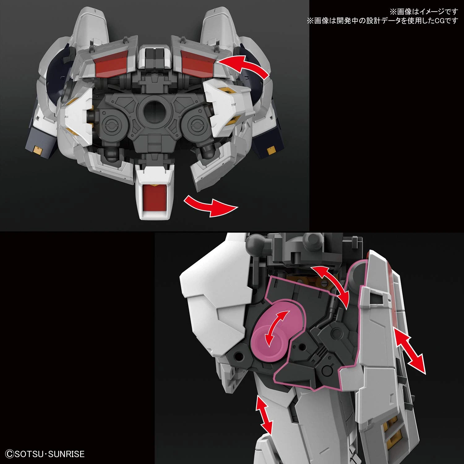 The final mobile suit used by Amuro Ray featured in Char’s Counterattack is available as an RG kit. It includes a multi-link gimmick that allows armor parts to slide simultaneously with the articulation of the leg, as well as armor unfolding gimmick through the body based on a thorough investigation of actual machines, resulting in a product with condensed details unique to RG kits.