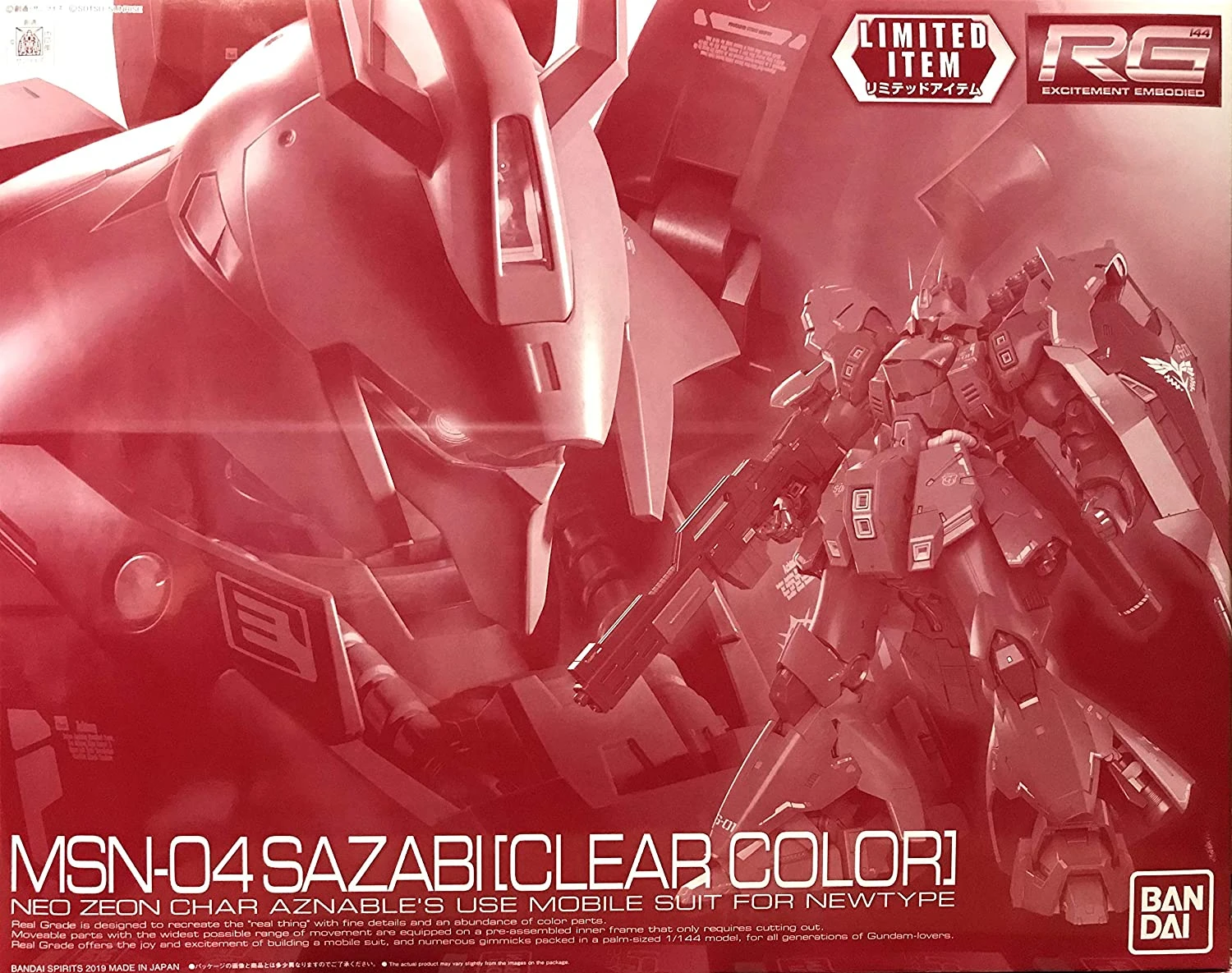 Gundam Real Grade Excitement Embodied 1/144 Scale Model Kit: “Limited Item” MSN-04 Sazabi [Clear Color]